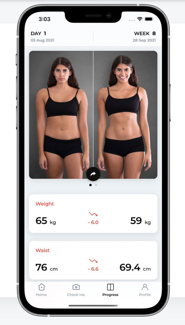 Check-in with weekly photos and measurements to keep track of your progress. Make amends whenever required.